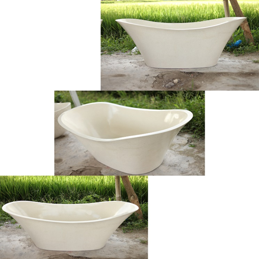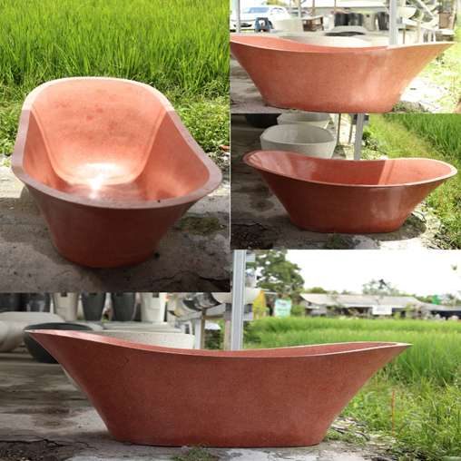 Bathtub ini diproduksi dari terrazzo premium, yaitu bahan komposit berkualitas tinggi yang dibuat dari campuran serpihan marmer alami, granite, quartz, dan terkadang kaca daur ulang, yang semuanya dicampur dengan pigmen pewarna alami serta semen putih berkualitas tinggi sebagai pengikat (cementitious binder). Proses produksi melalui tahapan pemadatan, pengeringan, pengamplasan, dan pemolesan hingga menghasilkan permukaan yang halus, kuat, anti air, dan tahan lama. Terrazzo tidak hanya menawarkan ketahanan luar biasa terhadap suhu dan kelembapan, tetapi juga memberikan tampilan artistik yang unik dan elegan.