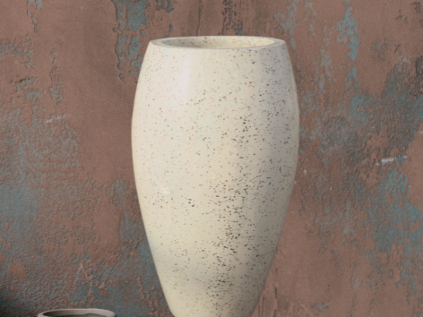 Hadir dengan bentuk silinder tinggi dan lekukan ramping yang elegan, pot terrazzo ini mencerminkan perpaduan sempurna antara estetika dan kekuatan. Finishing halus berwarna krem natural menjadikannya aksen dekoratif yang mewah, ideal untuk ruang indoor maupun outdoor bergaya tropis modern, urban minimalis, atau kontemporer natural.